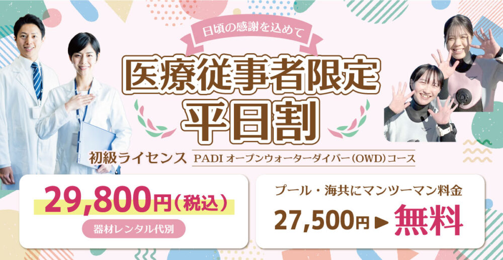 ※ダイビングライセンス取得コース・体験ダイビング・スクーバダイバーコースをご検討の方は、予め病歴診断シートをご覧いただき、参加に問題がないことをご確認ください。病歴診断シート