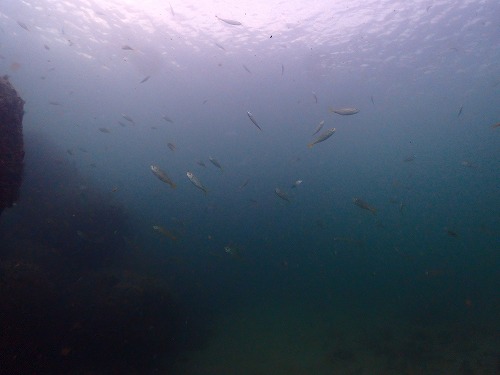 ヒカリウミウシ、マアジ群れ、アカエイ、オオアケウス?、アオリイカ、などなど