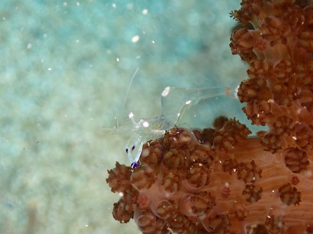 砂イソギンチャクや海藻に隠れ住むエビちゃん🦐