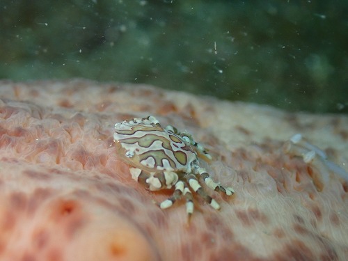 ナマコに隠れるカニさん🦀