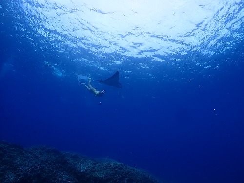 その頃、マダラトビエイさんは、スキンダイバーさんと優雅に遊んでおられました笑