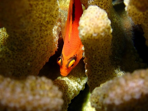 オレンジフィンアネモネフィッシュの横のサンゴにはこんな珍しい子が!!