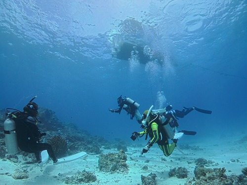 カメがいないか、自身の中性浮力、色々と確認しながら潜っていきましょうね。