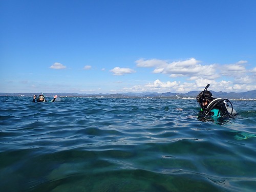 浮上させたら、2人分の器材を外しながら浜辺へ曳行だよ!