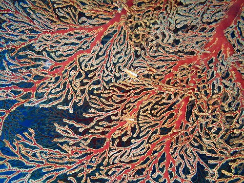 ソラスズメダイ、ハナミノカサゴ、アシビロサンゴヤドリガニ