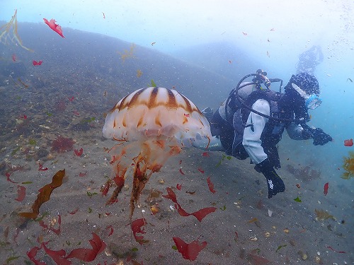 エントリーしたらすぐに巨大なキタノアカクラゲさん。