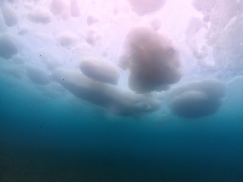 少し暗くなってしまいますが、どでかい氷が浮いた海を潜るのは