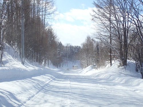 白鳥にお別れを告げて、こんな雪道を通って、