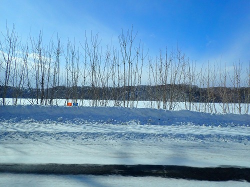 木の向こうに見えているのは湖で、この時期はワカサギ釣りが