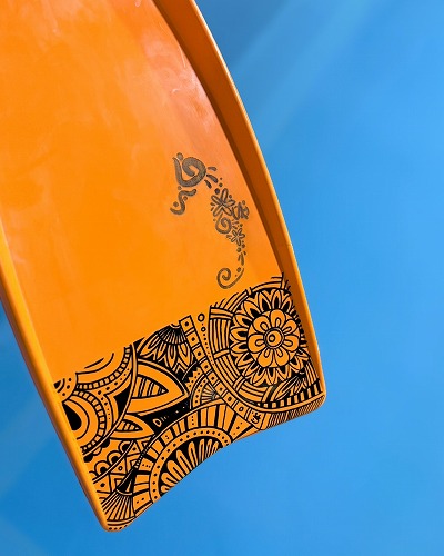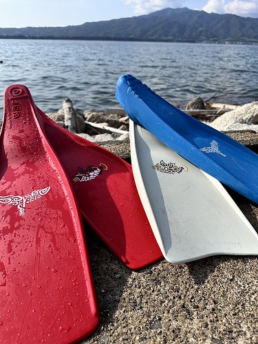 アートを施したフィンは、水中でも陸でも存在感抜群🔥